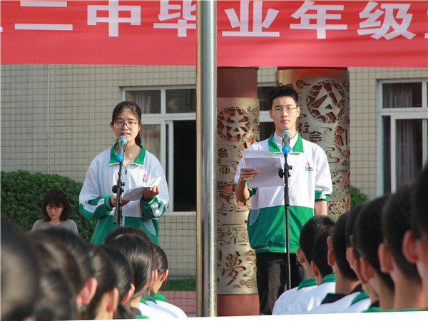 非毕业年级学生代表魏苏梅、许可两位同学为毕业年级献上配乐诗朗诵《礼赞六月》,字字句句间都是他们最诚挚的祝福,“六月,因为你们而精彩;六月,因为你们而辉煌;你们的存在,是六月的骄傲。”同时也表达出二中学子的决心,希望历代的二中人都会成为二中不变的荣光。