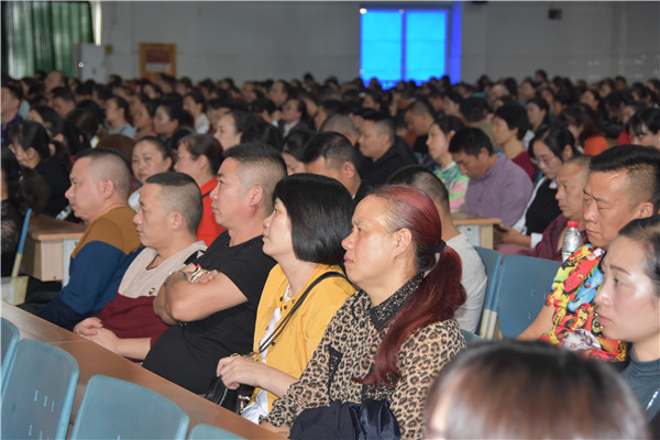 会议分两个阶段进行,第一阶段3点30准时在多功能厅开始,年级邀请了学校专职心理教师,国家二级心理咨询师,区家庭教育骨干教师廖军,对全体到会家长进行了家庭教育的指导。廖老师从高一新生入学后面对的苦恼入手,引导家长们理解、陪伴孩子,强调了对孩子的感受要有“同理心”,正确处理家庭关系,与孩子一起成长。廖老师深入浅出,既有理论支持,又不乏生动案例,与会家长亦是收获满满。随后刘晓峰老师代表年级,与家长们交流了影响高中生发展的主要因素,并据此结合学校管理的规章制度,向家长们通报了年级管理要求,分享了年级发展理念和年级发展的愿景,年级全体老师将齐心协力,助力每一个高一孩子成长。第一阶段的最后是温江二中校长,党总支书记季玲代表学校讲话。季校长首先为家长们介绍了温江二中近五年来的发展情况,硬件建设有目共睹,教学水平和教学质量稳步提升。随后季校长进一步向家长们介绍了高2022届的师资力量和历史成绩,请家长们放心地把孩子交给二中,交给二中的老师。结合学校,年级和学生成长的实际情况,随后季校长进一步给家长们规划了高一新生未来发展的科学路径和并进行了目标展望,为了达成家长和学校的共同目标,给家长们的家庭教育提出了科学建议和具体要求,最终为实现家校共育形成合力,为孩子们的成长保驾护航。季校长的讲话赢得了家长的高度认同,第一阶段的会议在家长们热烈的掌声中结束。
