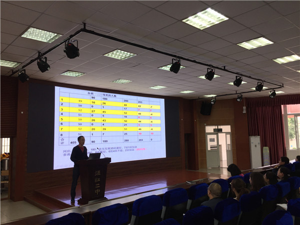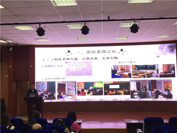 2019年10月14日下午4:00初一年级全体教师在阶梯教室参加初2019级第一次月考分析会。大会由年级组长黄雁老师主持,首先是年级组长陈建明老师为本次月考做成绩分析报告,通过一个个数据详细地展示了本次月考的相关情况;随后副校长郭久清对此次月考进行了总结,回顾了这个月来班主任、科任老师及学生的表现,同时也提出了几点要求,希望老师们在以后的教学实践中,强化学生的学习习惯,进一步提高教学质量,撸起袖子加油干!