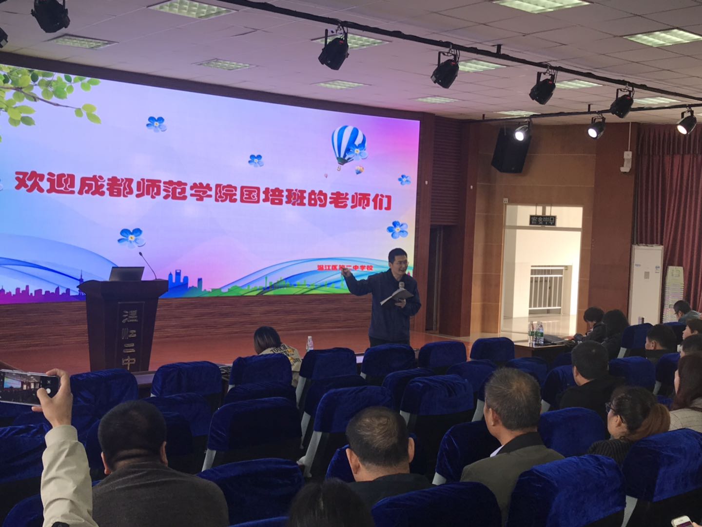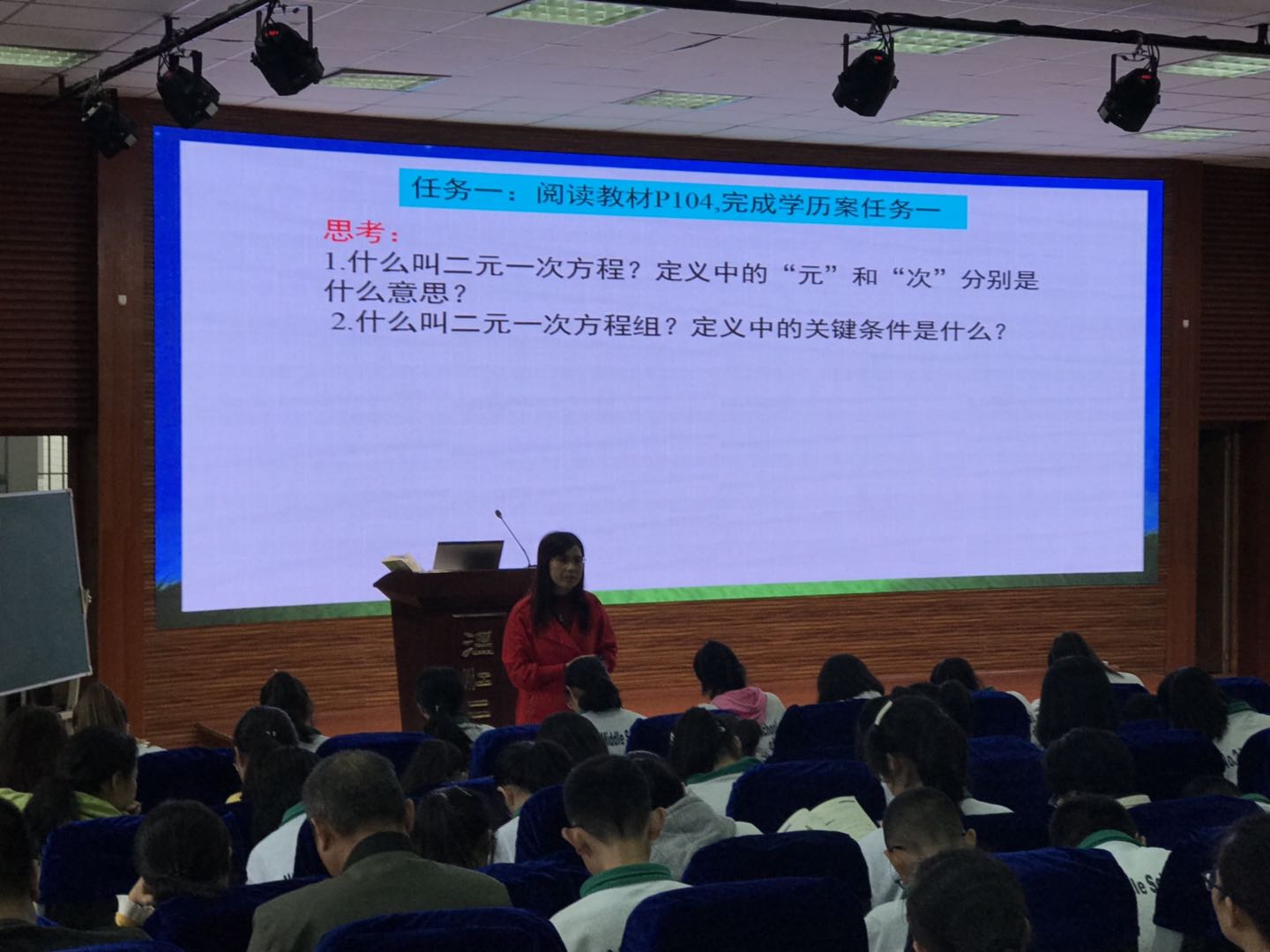 2019年11月1日清晨,我们迎着冬日暖阳,也迎来了远方的客人。成都师范学院国培班之“新疆建设兵团场部小学初中教师培训”活动,在温江二中阶梯教室隆重举行。本次活动由成师院数学学院副院长牟天伟主持,主要内容是数学八年级上册的“二元一次方程组”同课异构,有近百名教师参加。活动受到了温江区教育局和学校领导的高度重视,教育局督学袁淑英、温江二中校长季玲、副校长袁成亲临现场全程参与。