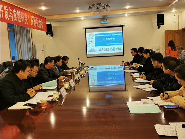 研究课展示结束后进行了课题开题论证。成都市教科院信息技术教研员艾奉平老师宣读了课题立项书。课题负责人区研培中心教研员何仕伟代表课题组从课题研究背景、温江区信息技术教育现状、核心概念界定、课题研究目标及方法等方面进行了介绍。