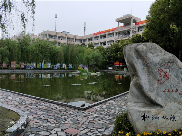 四月二中,春意盎然:孝亲亭下,绿草茵茵;读书廊上,藤蔓青青;柳池记忆,杨柳依依;孝行广场,绿树环绕。