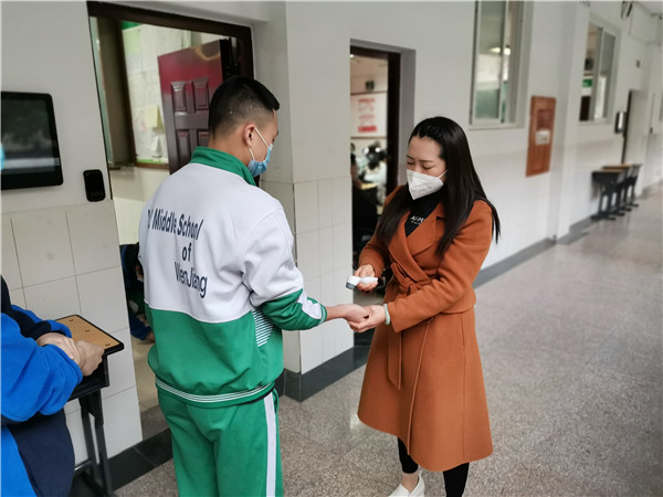 一周的复学时光,同学们在老师的指导下,一手抓防疫,一手抓学习。每天清晨,同学们按时到达二中校门,按规定线路,配合检测教师和医护人员接受体温检测。他们到达教室门口,经班主任的再次体温检测合格后进入教室,开启防控新冠疫情下一天的学习生活。