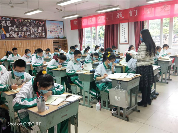 中考在即,回到校园的老师们同学们都倍加珍惜来之不易的复学机会,他们在课堂上展现出良好的精神状态:讲解、巡视、答疑全情投入;听讲、练习、巩固一丝不苟。
