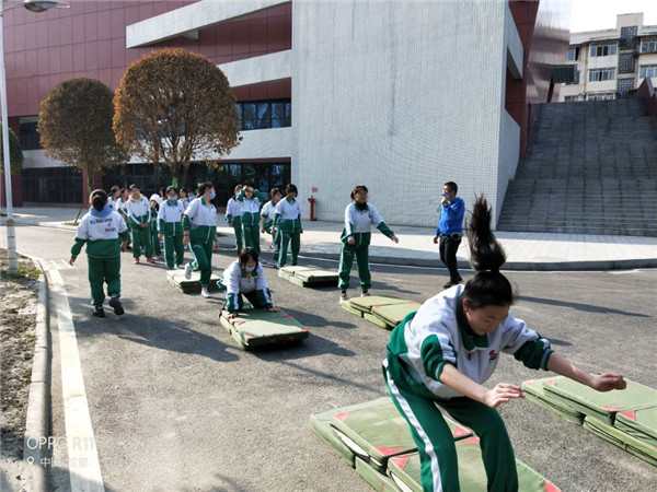 三个月的居家生活,同学们的体能都有所下降。每天的大课间,同学们有序投入到体育训练中去,为体考作准备。但是学校大操场在施工,训练没有标准的400跑道,学校积极为同学们联系四川理工技师学院,制定周密的训练实施方案,每周一次,到该院体育场进行长跑训练。