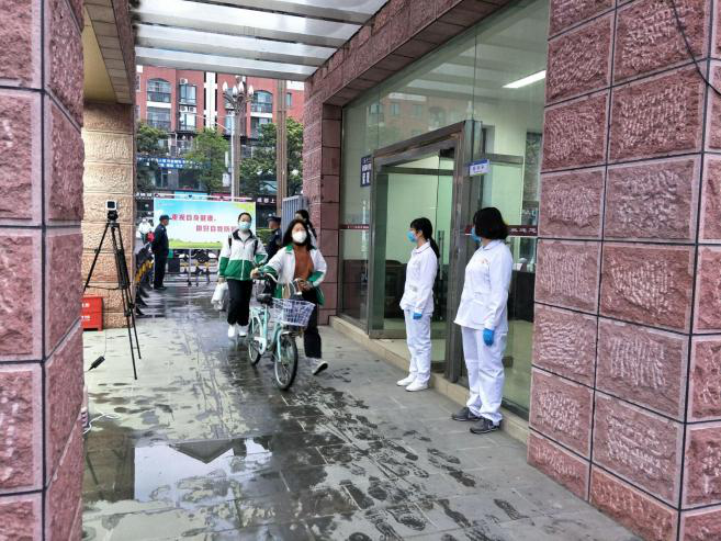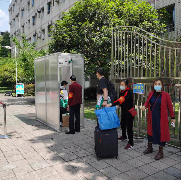 一大早,温江二中行政干部、校医、安保、消杀人员,以及负责体温监测、应急处置、校园秩序、行李转运的各类工作人员,准时到位,迎接高三师生回家。为了保证4月1日高三年级能顺利复课,许许多多的人在不同的岗位上尽心竭力、默默付出。复学筹备阶段,学校先后得到了区委、区政府、街办、教育局各级领导的关心指导,得到了公安、卫健、食药监、交通、城管、社区以及社区各界的大力支持。正是各级部门的通力配合,最终实现了温江二中高三复学第一天顺利、有序、安全。
