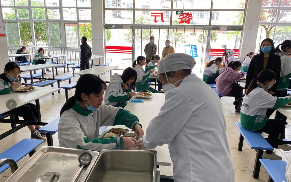 中午12点10分放学后,高三学生们陆续走出教室走进餐厅。所有师生员工在进入餐厅前都要先洗手,进行测温检查和手部消毒。我校实行分餐制,划分就餐区域,设定了就餐路线,就餐之后按照指定的路线离开食堂,返回教室。师生在食堂就餐时,间隔一米排队取餐,减少学生聚集时间。师生错峰就餐,在就餐时按指定座位入就座,同向而坐,保持合适距离。