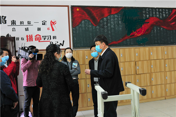 3月31日,区委副书记、区长、区新冠肺炎疫情防控指挥部指挥长马烈红调研我校疫情防控与开学复课准备工作,区副长邹华、区教育局局长鄢亮、柳城街道办书记杨新秋等一同检查,我校校长季玲及有关负责人随行。