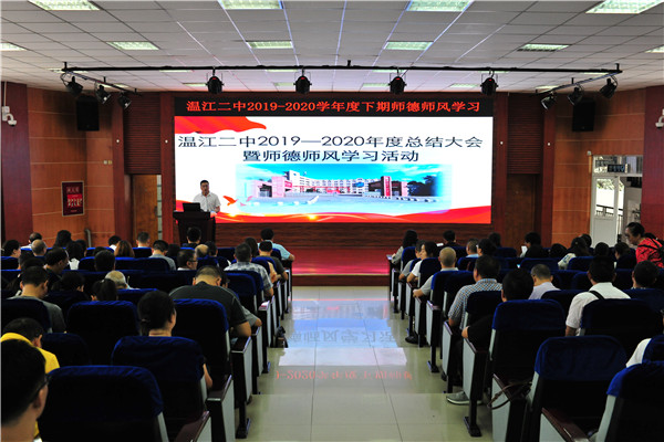 不平凡的2020,全体二中人携手共进,迎着晨光,伴着星月,走过每一个不平凡的日夜,迈过一个又一个的台阶,付出了数不清的辛劳,也收获了许许多多会心的微笑。7月20日全体教职员工汇聚在学校阶梯教室召开2019-2020年度下期总结大会。