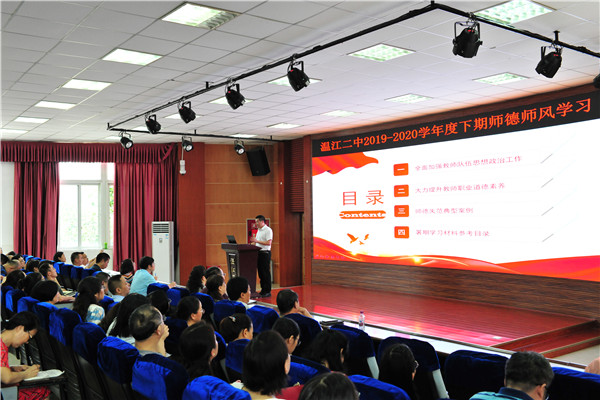 学校党委以师生发展为中心,以学校教育质量提升为目标,以办人民满意的教育为宗旨,不断强化党建工作,加强意识形态教育为学校发展奠定了坚实的基础。会上,校党委委员熊书钢带领老师进行师德师风学习,认真学习各项的理论,用党的理论武装的头脑,提高政治素质,坚定老师们理想信念,树立正确的世界观、人生观和价值观,树立全心全意服务的思想。
