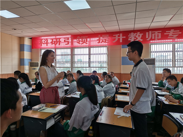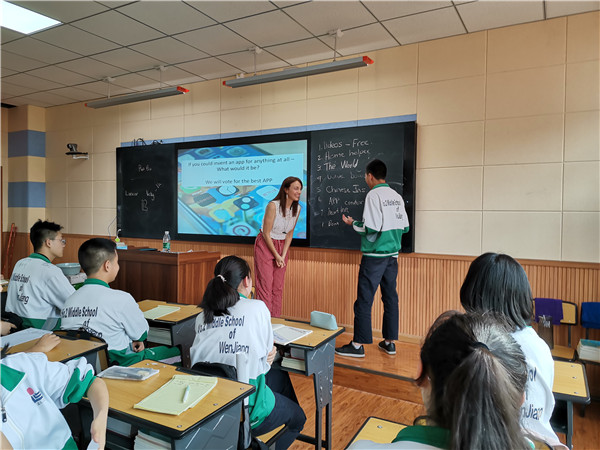 温江二中一直坚持开展外教教学工作,外教上课在口音和语言上有先天优势,通常能给予同学们沉浸式英语教育。外教开放,随和,讲课时肢体和表情很丰富,很注重跟学生之间的交流。学生们也在轻松愉悦的氛围下练习了口语,既开发思维能力又提升表达能力。