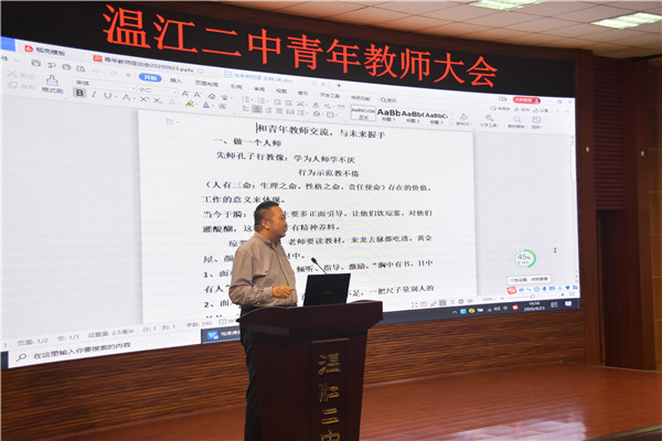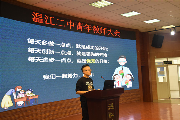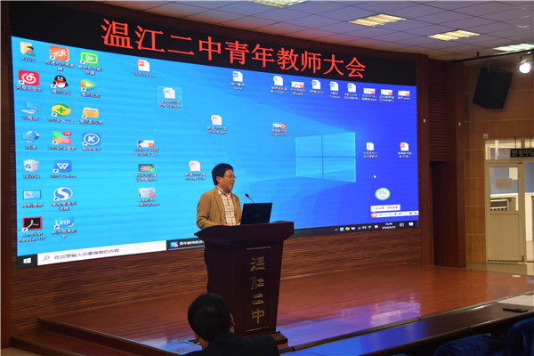 副校长袁成从自身感悟出发,向青年教师们阐述了教育的意义与价值。他提出“学为人师学不厌,行为示范教不倦”,告诉青年教师首先要从课堂做起,要多读教材、吃透教材,并多与学生沟通,勤思考,多行动,才能有成就。