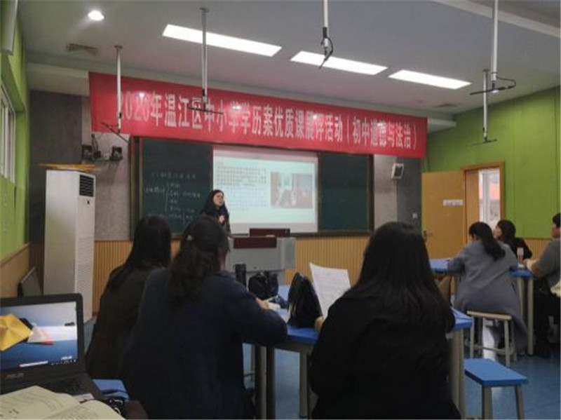 2020年10月20日,温江区中小学学历案优质课展评活动《初中道法》在温中实验学校举行,本次活动由研培中心政治教研员李霜玉老师主持。邀请的评审专家有李红艳、黄丽、研培中心副主任张周以及温江区各个学校的政治课老师参加这次活动。