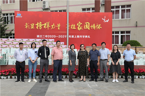 四川雅居乐房地产开发有限公司置业经理覃利,带领公司员工,为温江二中全体教职员工送来了慰问品:一张张贺卡,致敬人生筑梦者;一支支钢笔,表达对教师职业的崇敬;一束束康乃馨,表达了对教师爱与祝福……