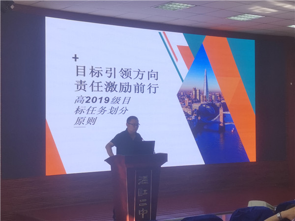 随后,年级组长刘晓峰在会上作了“目标引领方向,责任激励前行”的主题发言,介绍了本年级目标任务划分原则,制定了本年级本学期期末全成都市调研考试目标,并展望高三,为年级提前规划了高考目标。