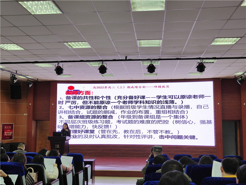 2020年11月16日下午,高2019级蓉城高中联盟半期考试成绩分析会在教学楼阶梯教室召开,大会由年级组长徐丽主持,全年级各学科教师出席了会议。