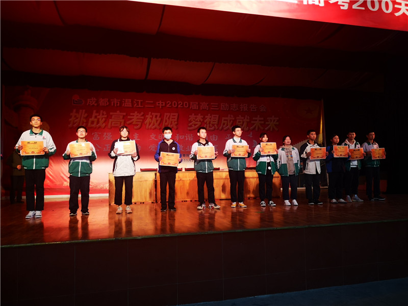 在颁奖环节,季校长、分管行政和年级组长分别为在本次半期考试中获得文理科特等奖、一等奖、二等奖、三等奖的学生和取得优异成绩的优秀班集体颁发荣誉,并重点表彰了取得单科状元和总状元的榜样。颁奖结束后,高三优秀学生代表作出冲刺200天的承诺,表示定将不骄不躁地走进200天,坚持不懈地奋战200天。他掷地有声的发言是所有高三学子们冲刺高考、志在必得的心声!