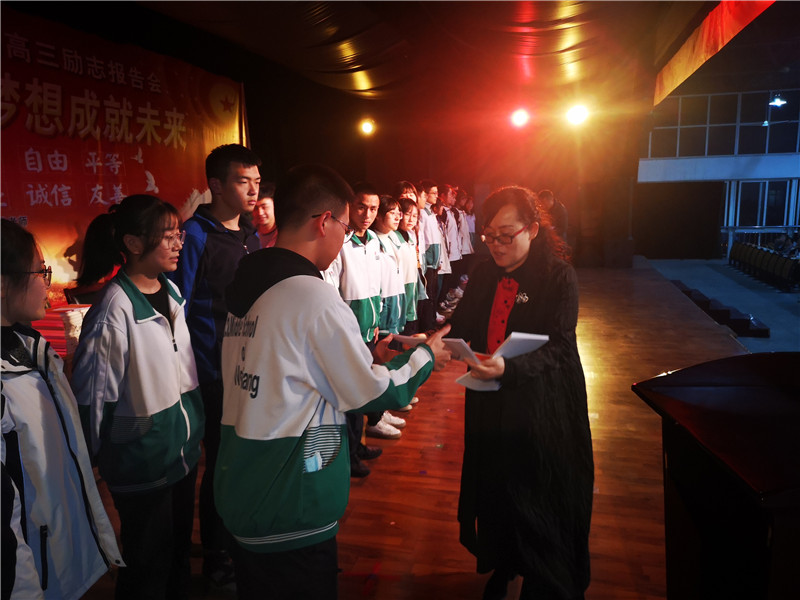 为激发高三师生蹈厉奋发、决战到底的勇气和决心,我校高三年级于11月15日晚上18点30分在校多功能厅举行半期表彰暨高考倒计时200天誓师动员大会。校长季玲及分管高三行政、部分家长代表出席大会,高三年级全体学生参加此次表彰誓师大会。大会由高三学生代表胡雅梦、梁祝瑜两位同学主持。