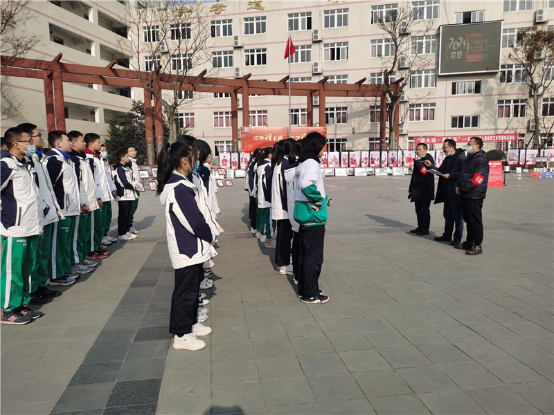 为进一步做好校园疫情防控和学校安全管理工作,确实提升我校应对处置新冠肺炎疫情突发紧急事件的处置能力。2021年1月5日上午11:30,我校以师生返校时发现新冠肺炎疑似病例为背景,有序开展了温江二中“新冠肺炎”疫情防控演练,学校分管德育副校长郭久清、德育处主任王强、德育处干部雷波、杜柯、校医及安保人员、初三1班全体同学参加了本次演练。