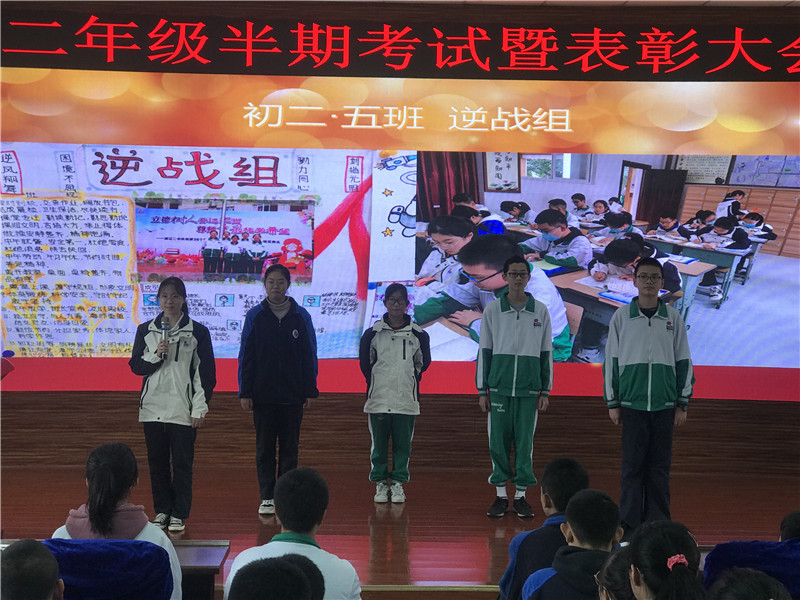 大会第二项是优秀小组发言。来自初二·一班的砸锅卖铁组冉紫仪组长首先作了关于小组建设的讲话,每位小组成员都阐述了在小组中的成长,强调小组合作的重要性和巨大创造力,极大鼓励了同学们的学习热情。而初二·五班的逆战组则提出了集体合作加强了其成员的纪律意识和责任感,小组长张紫凌同学提出了学习贵在坚持,号召同学们要紧跟老师的步伐,充分利用课堂40分钟的时间。