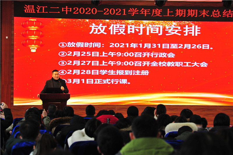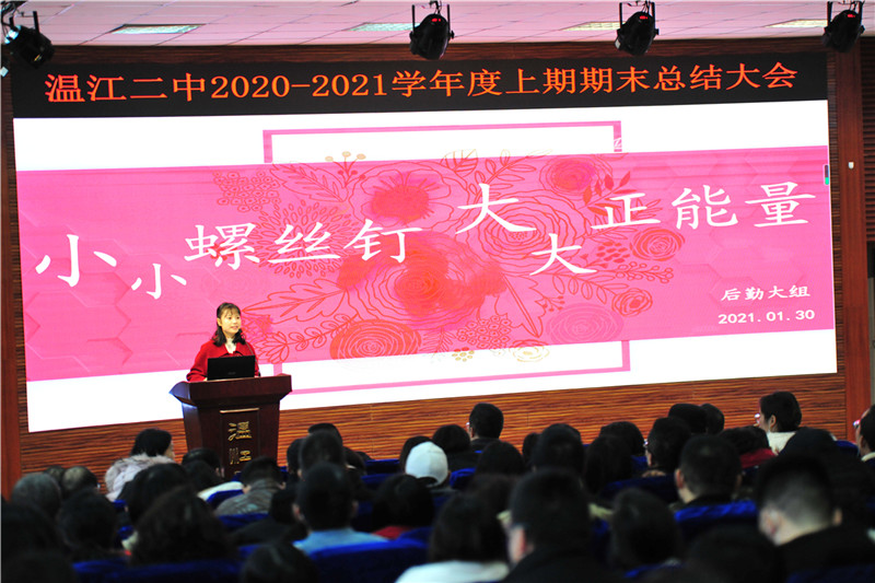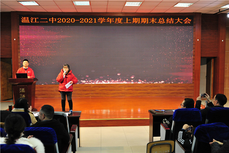 1月30日上午,学校阶梯教室灯光闪烁,一场温馨且富有新意的期末总结会在此召开。