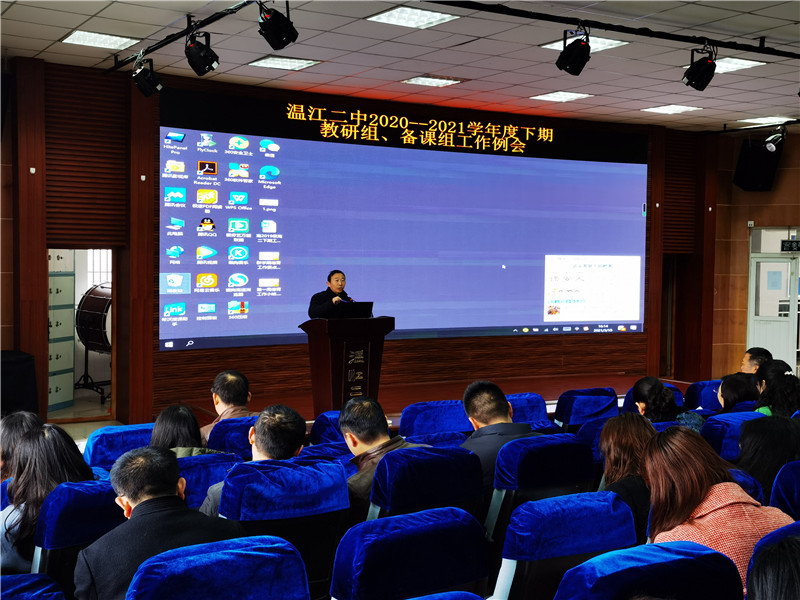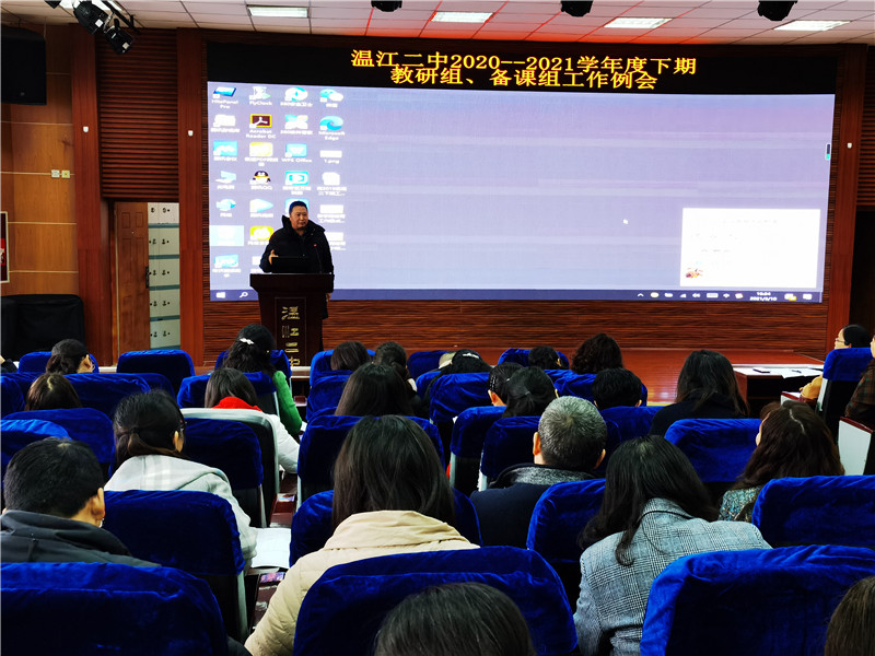 阳春三月,春光明媚,春意盎然。在这个成长的季节里,温江二中的全体教研组长、备课组长在教师发展中心组织下于3月10日下午齐聚本校阶梯教室召开了本学期第二次教研组长、备课组长工作会。副校长袁成、教师发展中心主任洪琼书,副主任李斌、周何霞,教育研究中心主任唐应树和副主任张军共同参会。