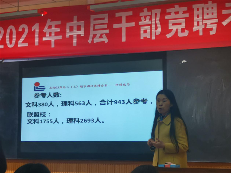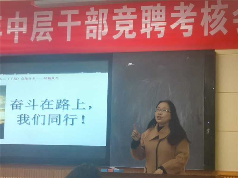 首先,徐丽组长就本次入学考试成绩分别从最高分、各科有效分、各科上线情况进行了详细的分析。以“奋斗在路上,我们同行”为主题分享了考试后的思考。分享了她眼中,高二年级奋斗者的身影。