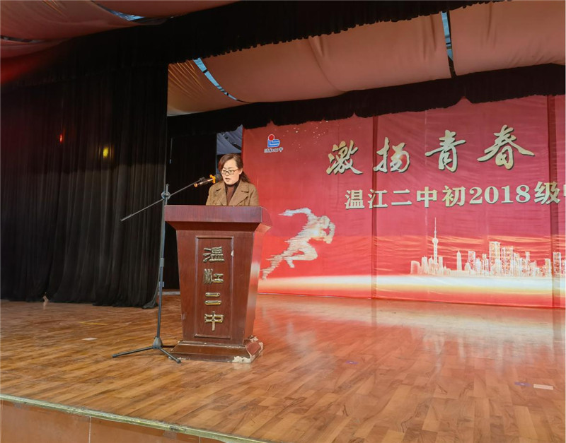 紧接着,季校长以真切的话语为孩子们送上鼓励与建议。她勉励孩子们在未来的100天,要有理想信念,并付诸行动!希望同学们在学习上要学会吃苦,坚定信念;要学会坚持,争取胜利;要学会自力,遵守纪律;老师们要多用智慧、多付出、多关爱、多点拨;家长们要多关心陪伴,助推孩子成长。最后,季校长强调:我们全体教师会奋力前行,让孩子们亮剑中考!