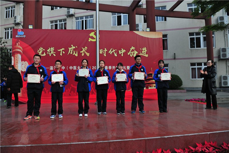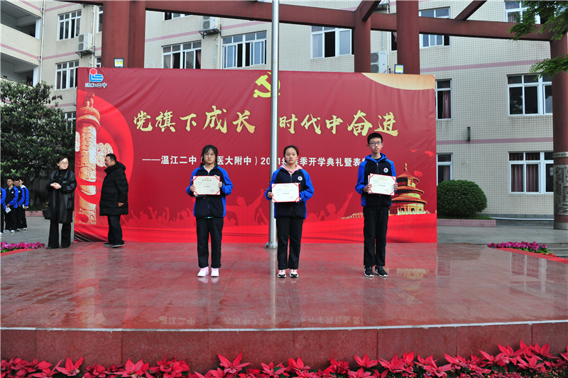 爆竹辞旧,春风送暖,跟着春天的脚步,我们迎来了新的学期。回首2020--2021学年度上学期,在区教育局的正确领导下,在学校领导的关心支持下,老师们的辛勤耕耘,同学们的携手奋进,温江二中在教育教学中取得了累累硕果。为弘扬艰苦奋斗、自强不息的时代精神,彰显身边榜样的力量,3月15日上午在学校升旗仪式上举行了对本学年度上期的学科标兵和学习标兵的表彰活动。