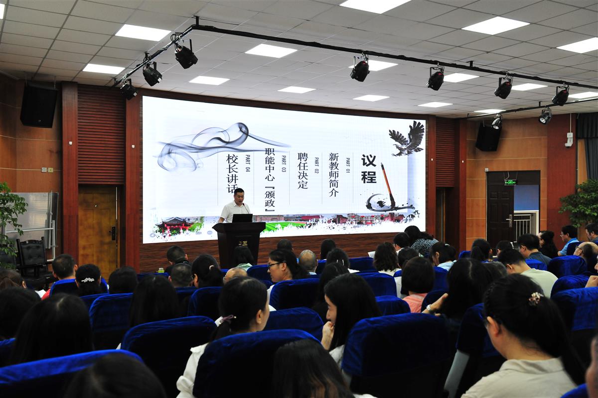 大会首先介绍了本学期公招考入我校的12名新教师和1名来校交流的教师。新教师学历高,思想活跃,精神面貌好,为我校教师队伍注入了新鲜血液。接着,学校向起始年级年级组长、班主任颁发了聘书。