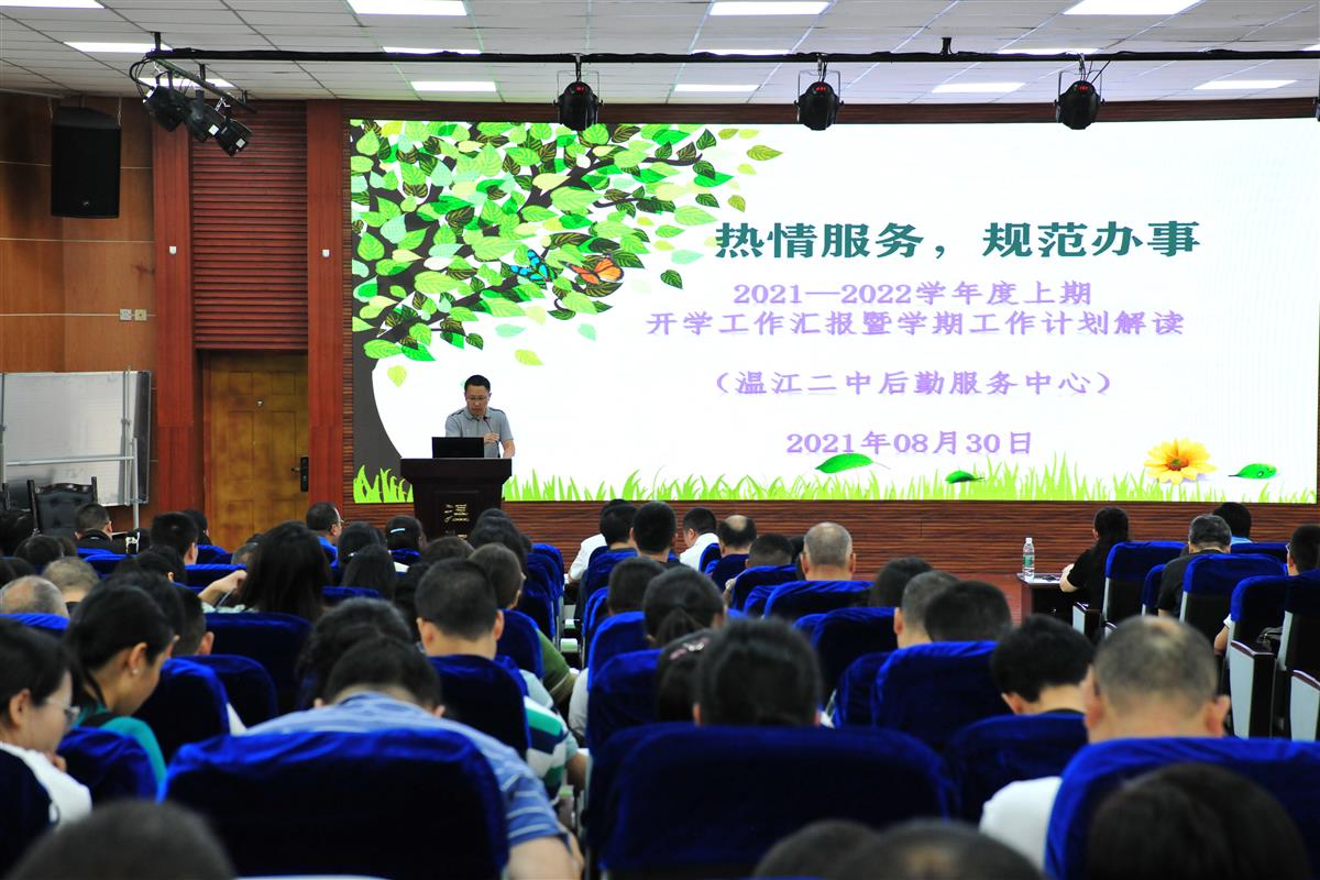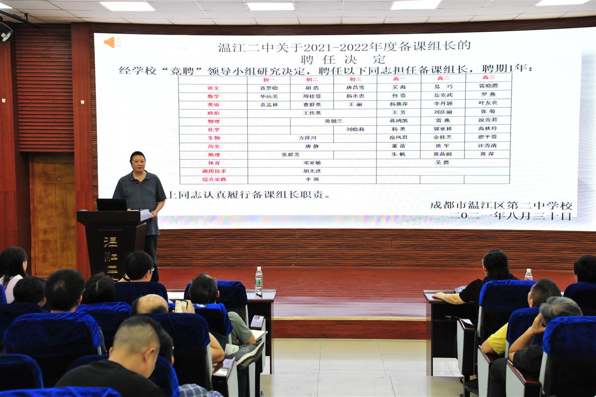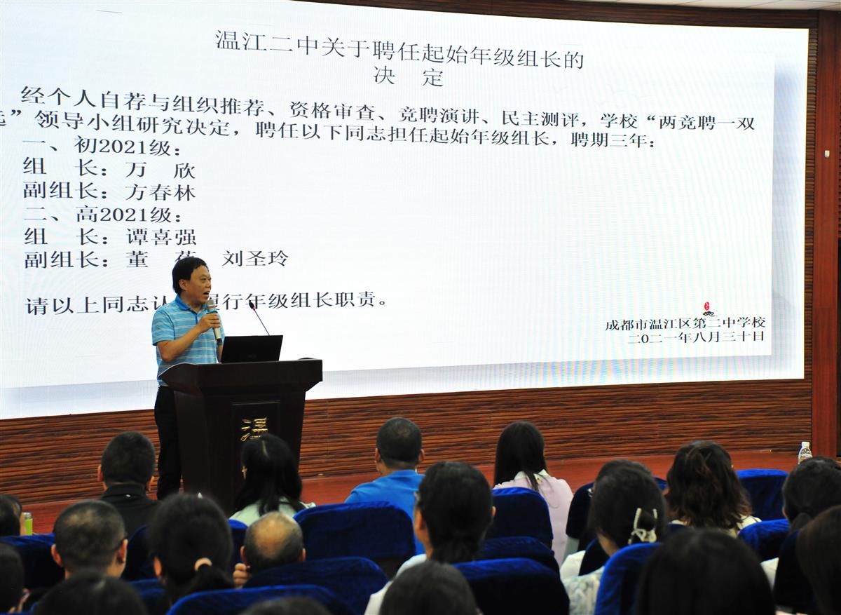 2021年8月30日上午,温江二中全体教职工结束了暑假生活,返回焕然一新的校园,参加了新学年开学教职工大会。本次大会,聚人心,鼓干劲,全面谋划和整体部署了新学年学校工作。