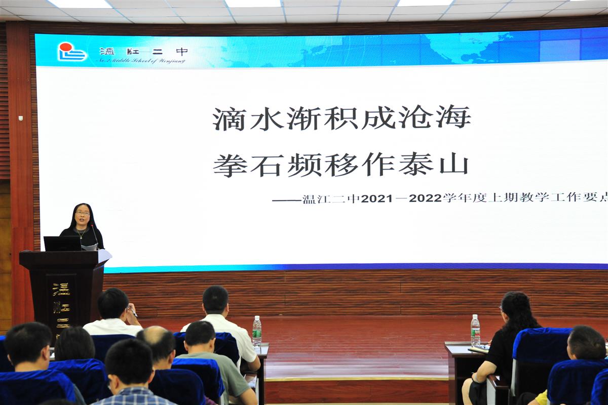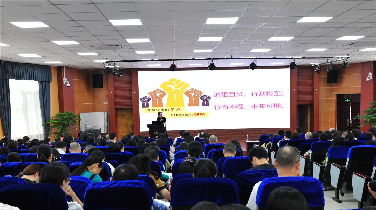 教师发展中心主任洪琼书以《滴水渐积成沧海,拳石频移作泰山》为题,分析了上学期末各年级成绩,查找存在的问题,提出对策;明确了本学年的目标和努力的方向。洪主任提出了本学年落实教学工作的五大举措:抓常规——勤于工作,扎实常规,提高效率出成绩;建队伍——热爱学习,增厚专业,提升素养可持续;研教学——善于思考,研学一体,提供发展新动力;探课改——面向未来,探索课改,积极应对中高考;促成长——乐于配合,宽以待人,营造育人好氛围。