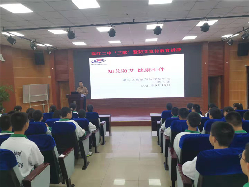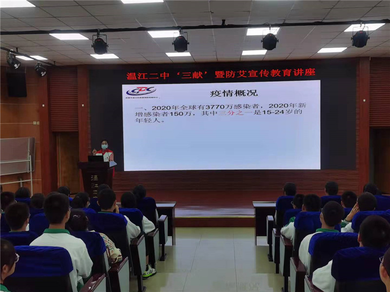 为了增强我校师生对“三献”知识的了解,树立“捐献让生命延续,爱心让生命永恒”的观念,进一步提高师生对防范艾滋病的认识。9月15日下午,我校特邀来自温江区红十字会和区疾控中心的专家,专程来我校为高一学生带来一场“三献”暨防艾专题讲座。
