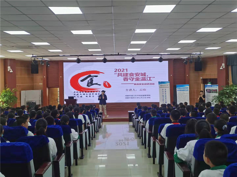 民以食为天,食以安为先。食品是人类生存的必需品,其安全问题对我们的健康乃至生命至关重要。特别是青少年作为祖国的未来,食品安全尤为重要。为加强学校食品安全知识宣传,增强学生的食品安全意识,教育和引导学生养成健康的饮食习惯,2021年9月8日下午15:45成都市中医药大学的公共卫生学院的孟晓老师为我校初一新生送来了一场内容丰富、生动形象的食品安全第一课。