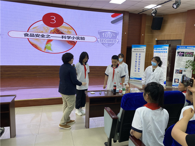 同时,为了增强学生对食品安全知识的学习兴趣,工作人员运用小实验向同学们演示了我们日常生活中常见饮料中的糖分含量,以及通过燃烧薯片告诉同学们我们平时吃的零食中油脂的含量。过程中同学们认真听讲,积极参与,通过这些小实验让同学们在亲身实践中学习了食品安全知识。使同学们认识到营养失衡和吃零食的危害,树立科学、文明的饮食卫生习惯,不挑食,不偏食,培养学生健康的饮食方式。