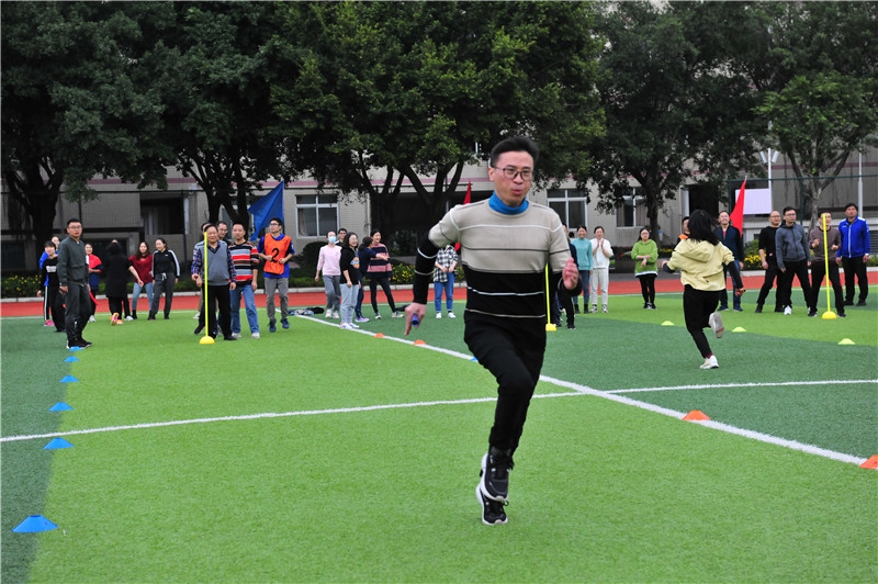 运动员们由初中教师队、高一教师队、高二教师队、高三教师队、职能中心联队共五支参赛队组成。比赛共设置了同心圆、珠行万里爱心接力、3分钟8字跳绳、30X25米迎面接力赛跑四个趣味竞赛项目。这些项目以趣味调动积极性的同时极大地展现了队员间的团结协作精神。运动会现场被震耳的加油声、畅快的欢笑声和喝彩声包围,老师们互相鼓励、互相帮助,将运动会气氛推向高潮,和谐喜悦的氛围溢满全场。经过激烈角逐,高三教师队以优异的成绩摘得团体桂冠与职能中心联队并列一等奖,高二教师队、初中教师队、高一教师队获团体二等奖。