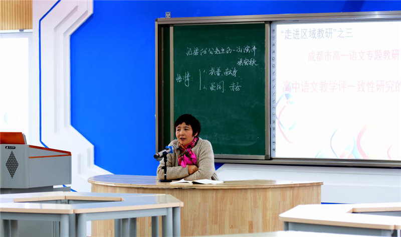 2021年10月28日上午,由温江二中承办的走进区域教研之三——“成都市高一语文专题教研活动:高中语文‘教—学—评’一致性研究的温江实践”如期顺利在温江二中录播室举行。本次专题教研活动由成都市教育科学研究院王秉蓉领衔召开,成都市中小学教师继续教育网同步直播。