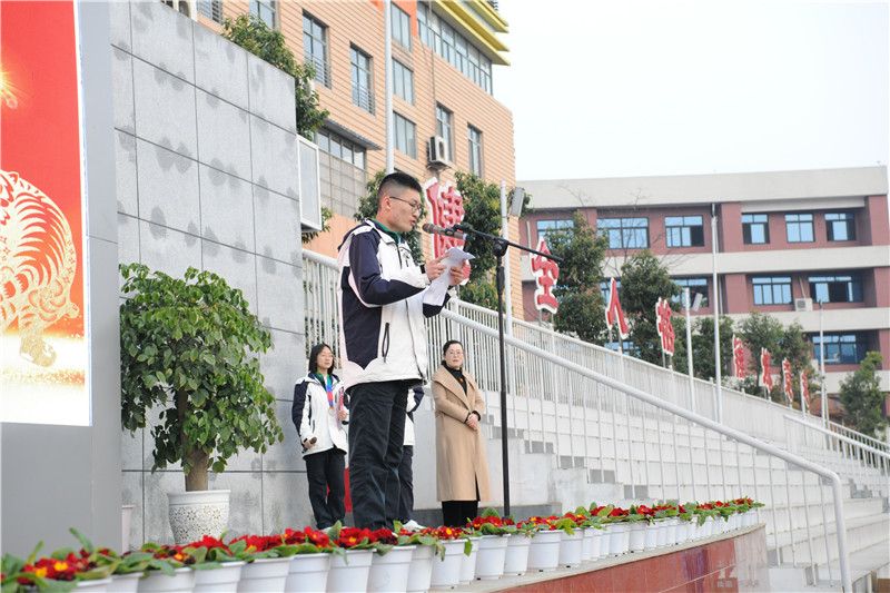 学校分管教学的袁成副校长肯定了二中学子在过去的一学期求真务实、踏实前行的优秀品质,赞扬了二中学子勤奋努力、奋勇争先取得的优异成绩,并宣读了学校关于给予王诗芸等95名同学的表彰决定。袁校长寄语同学们,以榜样为指引,在万物复苏生机勃发的季节里开启新的人生征程。温江二中校级干部为获奖同学颁奖。