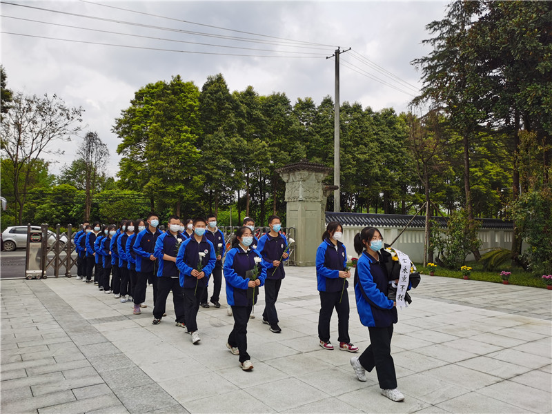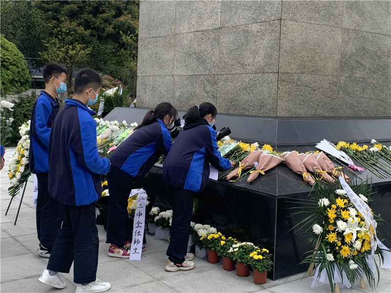 4月1日,在学生发展中心的组织下,高一年级各班班长、团支书及部分学生会干部怀着无比崇敬的心情来到了温江烈士陵园,通过清明祭扫形式纪念先烈,饮水思源,缅怀先贤。在高大的烈士纪念碑前,师生进行了庄严肃穆的哀悼仪式。同学们向烈士敬献了花篮,向革命烈士默哀三分钟致敬。在烈士纪念碑前,全体团员重温入团誓词,表示一定不辜负烈士们的遗愿,学习先烈的精神,继承革命传统。活动最后,同学们纷纷向革命烈士敬献了自己亲手制作的小白花,参观了革命烈士纪念馆,整个过程庄严肃穆。