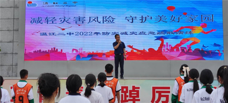 在演练过程中师生们服从安排,行动迅速,积极配合。在不到4分钟的时间里,师生们就从教室撤离到指定地点。学生发展中心王强主任与杜柯副主任分别在初一、高一演练现场进行了小结。季玲校长和郭久清副校长全程参与。通过演练,师生在灾害发生时能够科学避险、有序撤离,切实提高了师生实际应对、处置突发安全事件的能力和自我保护能力,并结合实际进一步修订、完善防灾减灾应急预案。