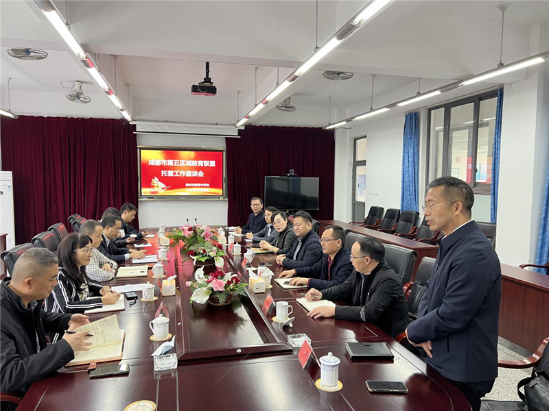 为进一步促进成都市第五区域教育联盟发展,加强区域教育合作与交流,助推全域成都教育高质量发展,根据《成都市教育局关于进一步深化区域教育联盟发展的意见》文件精神,10月26日上午,成都市第五区域教育联盟托管工作座谈会在崇州廖家中学行政会议室召开。温江区教育局党组成员、副局长赖政,温江区教育局相关科室负责人及派出团队,崇州市教育局党组成员、机关工委书记刘学鹏,崇州市教育局班子成员、教培中心主任刘伏元及相关科室领导,崇州廖家中学全体行政参加会议,会议由崇州市教育局人事科赵科长主持。