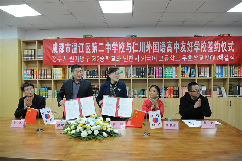 签约仪式上,我校校长季玲、仁川外国语高中校长金基东分别致辞,双方表示牵手对方建设友好学校是两所学校发展过程中的一件大事,更是加强学校国际发展、推进学校现代化建设的重要内容。同时,这也是双方互相学习、互相协作、共同提高的重要举措。