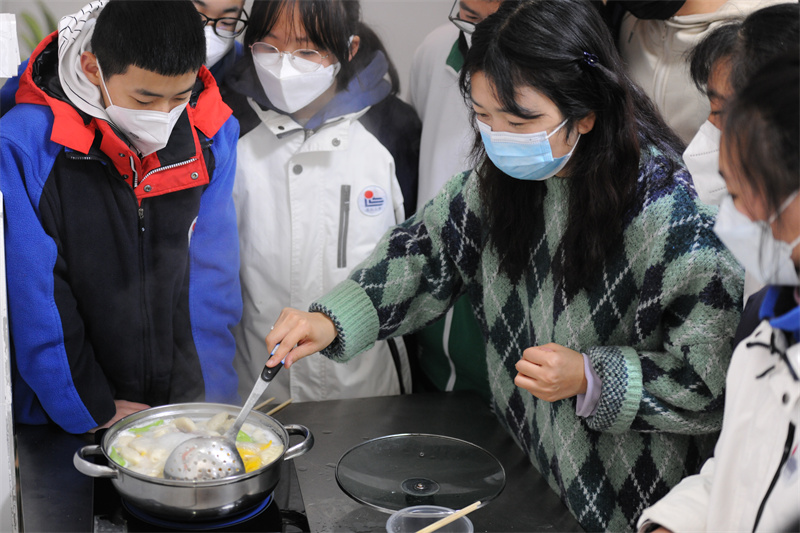 本次活动内容丰富,形式多样。在主持人的组织安排下,各小组派出代表挑战“五分钟包饺子”活动。活动中,同学们包馅儿、捏皮儿一气呵成,动作娴熟,有条不紊。活动第一个环节结束后,老师们也积极参与其中,给予亲切的指导,同学们分工协作,活动现场欢声笑语,热闹非凡。