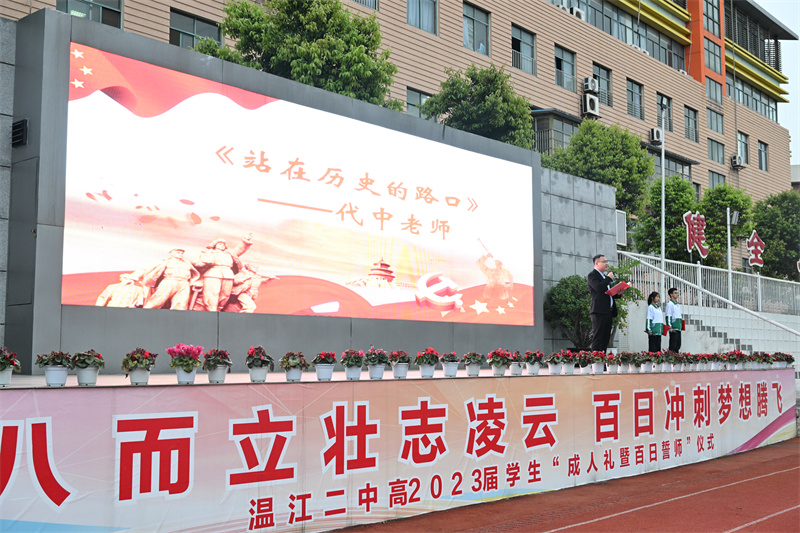 高中语文代中老师带来了《站在历史的路口》国旗下演讲。代老师号召同学们,接过历史的接力棒,珍惜所有,心怀感恩;坚定梦想,踏实勤勉;勇担责任,砥砺前行。