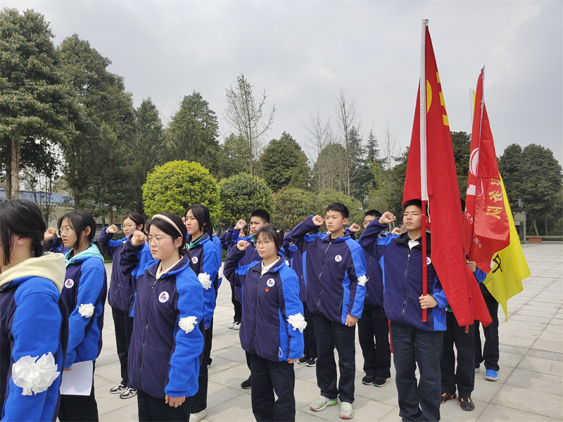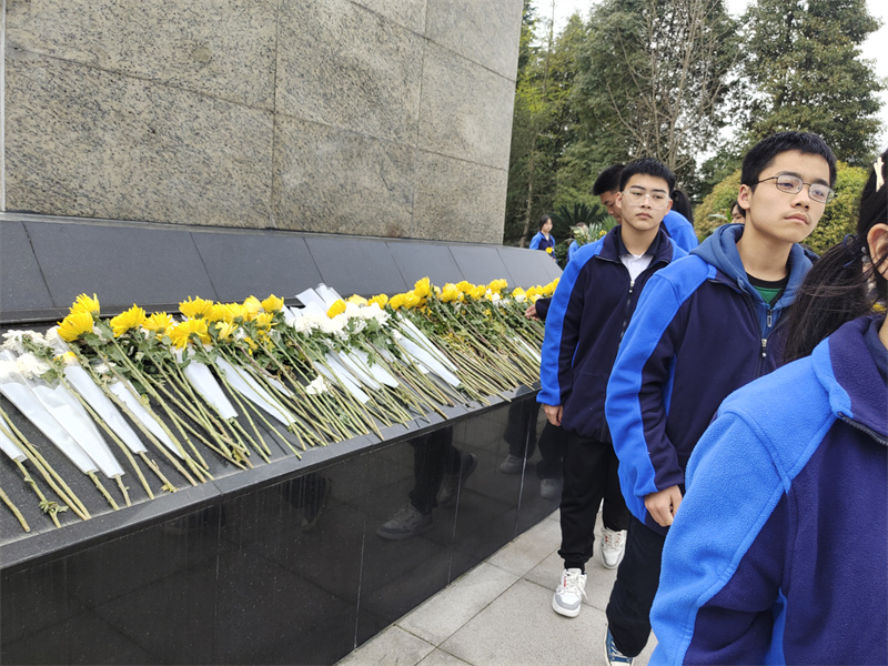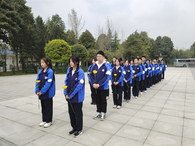 330日,在学生发展中心的组织下,高一年级各班班长、团支书及部分学生会干部怀着无比崇敬的心情来到了温江烈士陵园,通过清明祭扫形式纪念先烈,饮水思源,缅怀先贤。在高大的烈士纪念碑前,师生进行了庄严肃穆的哀悼仪式。同学们向烈士敬献了鲜花,向革命烈士深深鞠躬并默哀三分钟致敬。
