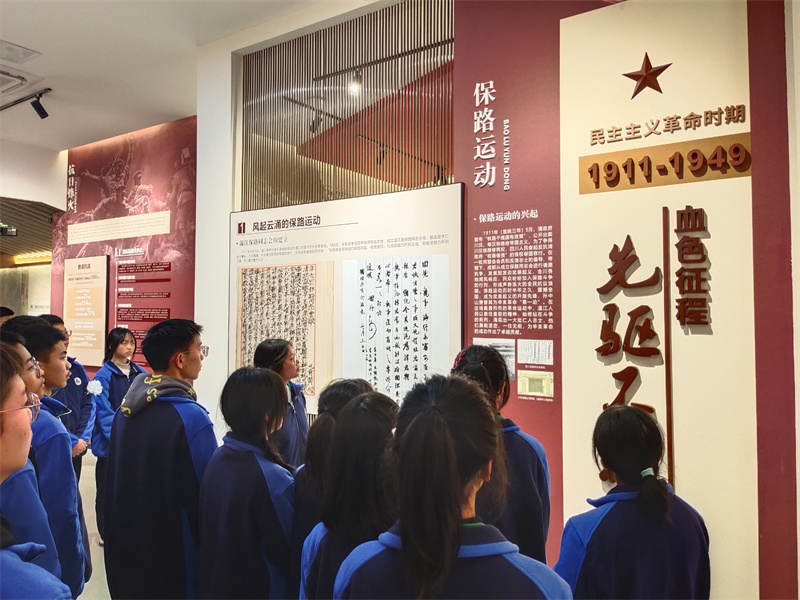 接着,同学们在陵园负责人代勇主任的带领下参观了革命烈士纪念馆,场馆里展览的每一件珍贵的文物、每一幅生动的图片和每一段感人的文字介绍,都让同学们震撼不已,深受感动。同学们纷纷表示:要以革命先烈为榜样,学习他们不畏艰难、勇于献身的革命精神,追随革命前辈的印记,热爱党、热爱祖国,发奋学习,立志成才,报效祖国。