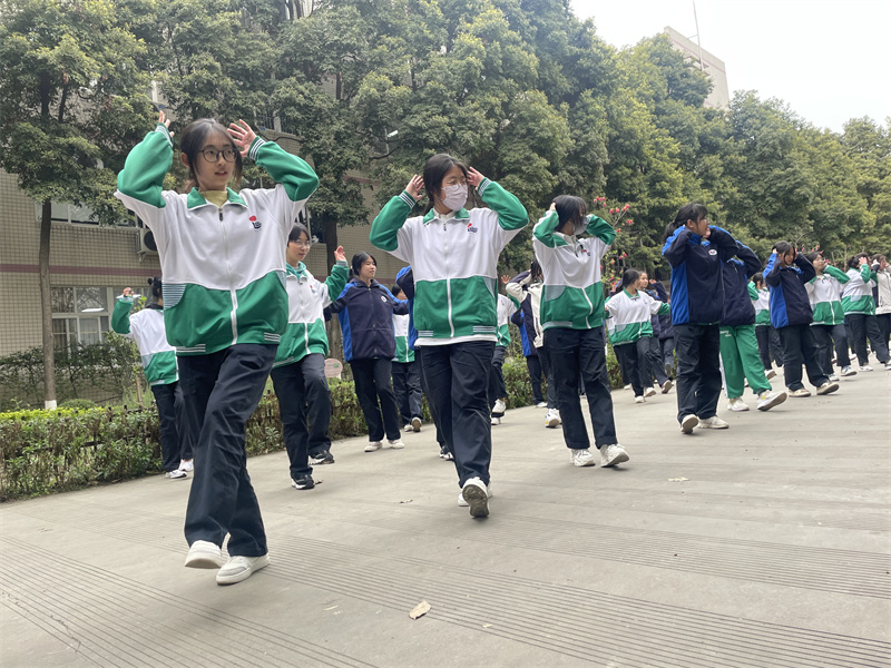 生命不息,运动不止,3月31日,我校高中部60人参赛队伍在体育组姜晓鸣老师的带领下参加了首届成都市温江区中小学大课间比赛。