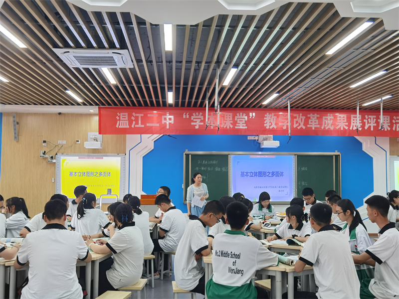 课堂是教师的主阵地,研讨活动首先由温江中学江福民老师和我校唐业娇老师进行的课例展示。两位老师以《基本立体图形—棱柱、棱锥、棱台》为例进行同课异构,分别呈现了两堂精彩的教学展示课。两位执教老师各具特色,充分准备,重难点突出。教学环环相扣,思维缜密,较好地完成了预设目标,充分体现了“双新”课堂教育理念。课后两位老师就如何将已知的数学对象迁移到未知的数学对象做了分享交流。