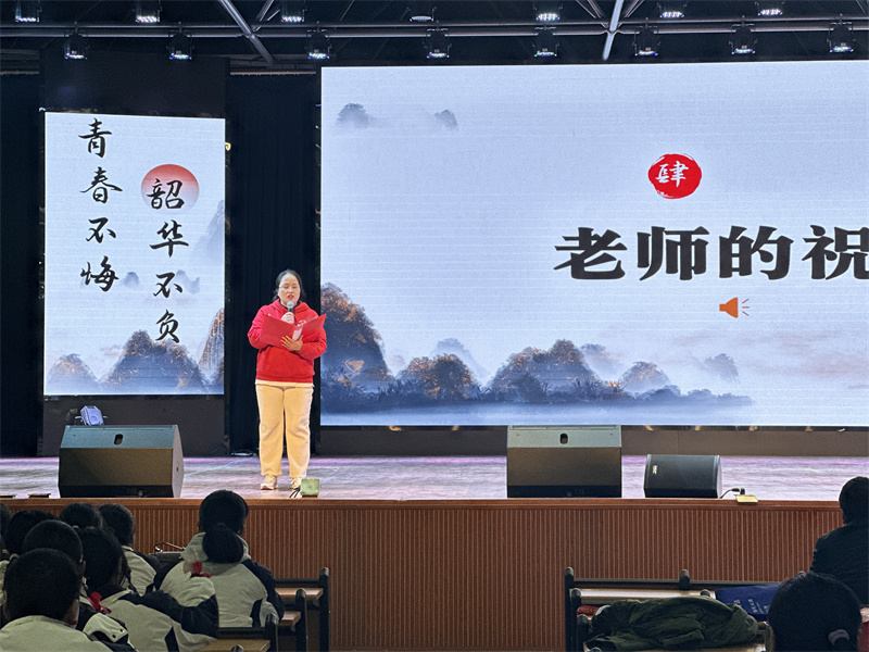 陈晓英老师作为初三年级教师代表告诉孩子们,一百天很短,如弹指一挥间,一百天又很长,长得足够改变一个人的命运。中考是人生的第一次关键的选择,希望孩子们以积极自信的心态,用科学的方法,凭着刻苦的勤奋与毅力,投入最后的冲刺。