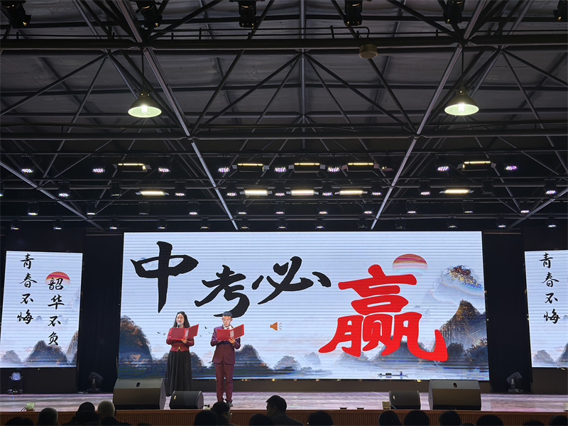 手握星辉,执笔为剑,以梦为马,不负韶华。在领导、老师、家长的鼓舞下,同学们高呼青春的誓言,为中考冲刺吹响冲刺的号角。“九年磨砺,立志凌绝顶;百日竞渡,破浪展雄风”青春不畏风浪,前途无惧坎坷,铿锵的誓言是对梦想的执着追求,高呼的口号是我们必胜的决心。